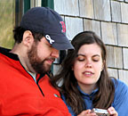 As always, we met at the Gale River trailhead at 9:00 AM. Everyone saw a few dead moose on the side of the road on the drive up including a very fresh carcass in the middle of Franconia Notch. The newly engaged Seema and Brian had divided the huge quantity of food into 28 equally heavy bags for us each to carry. In the parking lot there were friends greating friends, congratulations being given, people comparing gear and borrowing insect repellent. After some dicking around the various groups self-selected and started up the 4.6 miles to the hut. One group (MEB, Little Sister, and Drewski) hiked in via Garfield and across the ridge.