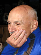 It was a hot day and everyone was in shorts and shortsleeves. The first river crossing was without a bridge which was washed away last year and the water level was pretty high. When I arrived I observed people on the other side putting their boots back on so I got ready to take mine off. Just then UFC arrived and just ran across the rocks and managed to stay try, so I followed in his wet footprints and saved 15 minutes or so. On the other side I hooked up with JohnS, Meri, and Nancy, my compatriots from gourmet weekends past. At the second crossing (which was less favorable to those of us with short legs) we all elected to go across in sandles. The cold water felt pretty good, actually. On the climb up we were playing leapfrog with another group from AMC Naragansett Chapter.