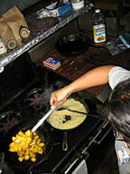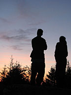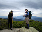 On the summit of South Twin we ran into Wendy and Jim. I lent Wendy my softshell jacket as they were going to North Twin and it was begining to rain. We didn't hang around too long and instead headed back to the hut. The trip down was slippery and slow, and the rain falling didn't help. MEB had considered heading to Guyot but the rain put an end to that. Instead she headed down to 13 Falls; those amazing Mean Girls. At the hut we started helping out with dinner prep for the nights Indian meal. Again, Seema pulled together a fantastic repast and we all ate and ate and ate, sharing our excess with the croo and other guests. The sunset wasn't as spectacular as the previous night and we hung around until after lights out since we were all going our separate ways the next day.